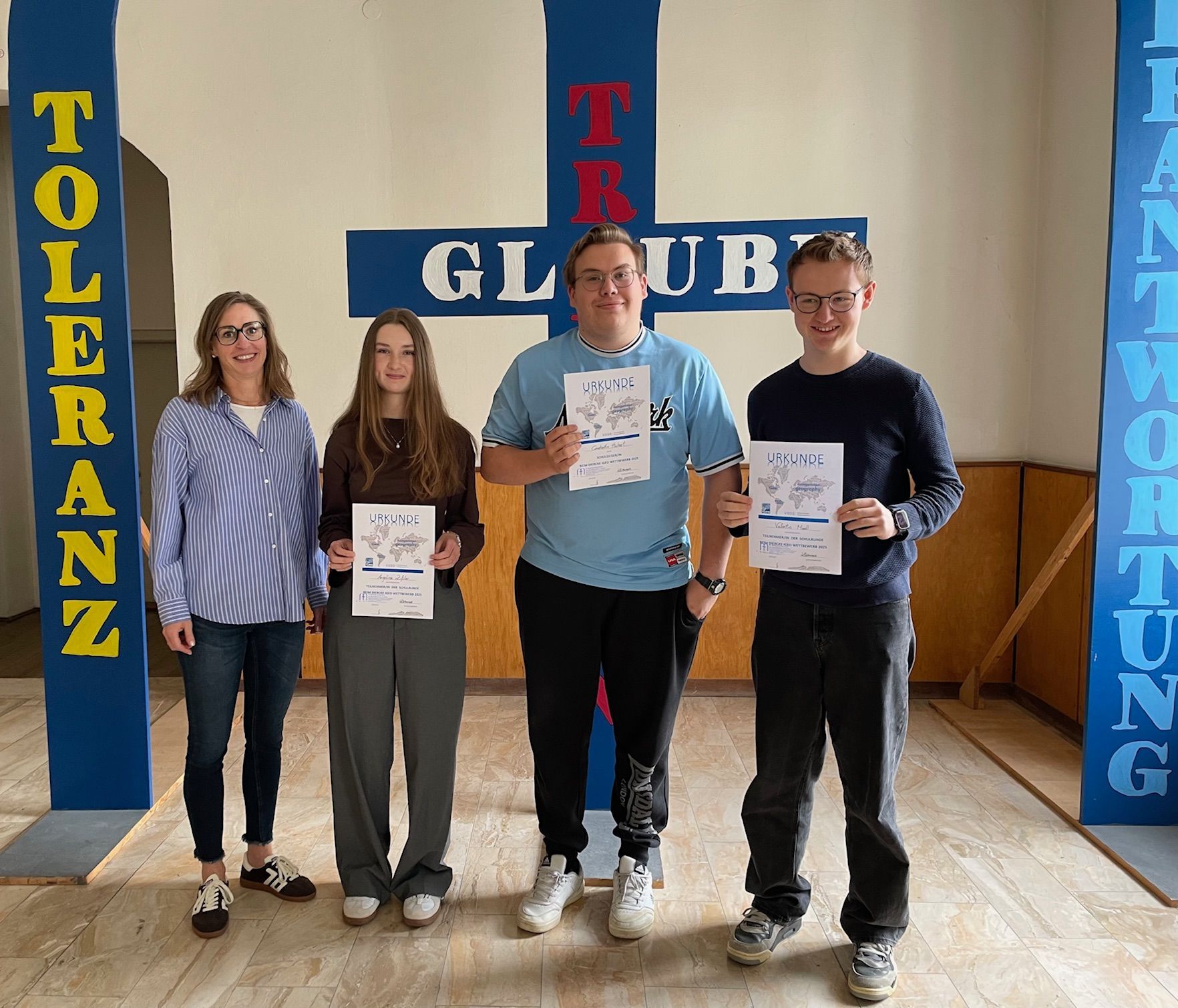 Am 26. September 2025 nahmen drei Schülerinnen und Schüler des Leistungsfachs Geographie freiwillig am Wettbewerb „Diercke iGeo 2025“ teil. Dieser bestand aus einem Multiple-Choice-Test sowie einer Klausur, die jeweils in englischer Sprache abgelegt wurden. Während sich die Aufgaben in der Klausur auf das Land Norwegen bezogen, erstreckte sich der Multiple-Choice-Test über die große Bandbreite geographischer Fragestellungen und forderte die Teilnehmerinnen und Teilnehmer Angelina Zißler, Valentin Miedl und Constantin Hubert sowohl hinsichtlich ihres Wissens über physische Geographie als auch über wirtschaftsgeographische Einschätzungen sowie detailgenaues Länderwissen. In den offenen Fragen wurde der Fokus auf Norwegens Klima und Relief, aber auch auf die Energiewirtschaft sowie die Frage, ob das Land als Vorbild für andere europäische Länder bei der Entwicklung der E-Mobilität dienen könnte, gelegt. Wenngleich auch am Ende Platz 1 und 2 im schulischen Vergleich nahe beieinanderlagen, so hatte doch Constantin Hubert vor Valentin Miedl die Nase vorn und ging als Schulsieger hervor. Damit konnte er an der Auswahl der Landessieger teilnehmen, welche von den Landesbeauftragten des Verbands Deutscher Schulgeographie bestimmt werden. Auch wenn es hier leider nicht für den Sieg und somit die nächste Wettbewerbsrunde gereicht hat, so dürfen wir Constantin zu einem sehr erfreulichen 3. Platz in Bayern gratulieren.