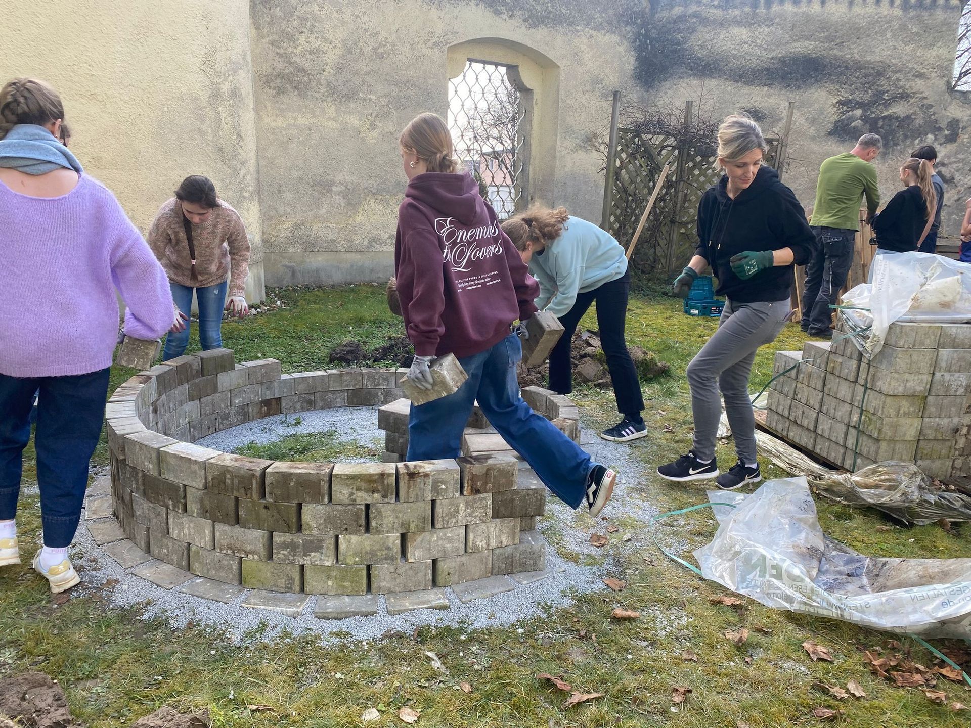 Der Schulgarten unseres Gymnasiums erstrahlt in neuem Glanz – und bietet unseren Schülerinnen und Schülern künftig noch mehr Möglichkeiten, Natur hautnah zu erleben und aktiv mitzugestalten. Mit viel Engagement und gemeinsamer Arbeit wurde das Gelände vom P-Seminar Geographie und dem Wahlkurs Schulgarten zusammen mit dem Handwerkerteam des Klosters umfassend neugestaltet und zu einem lebendigen Lernort weiterentwickelt. Im Zentrum der Neugestaltung steht das neue „grüne Klassenzimmer“. Hier kann der Unterricht in den Frühlings- und Sommermonaten in die Natur verlegt werden. Die Tische, die aus umfunktionierten Kabeltrommeln bestehen, wurden freundlicherweise von der Firma Gabo Systemtechnik gesponsert und tragen zu einer nachhaltigen und zugleich originellen Gestaltung des Außenbereichs bei. Ergänzt wird der Garten durch eine vielfältige Bepflanzung. Eine neu angelegte Beerenecke lädt künftig zum Naschen ein, während in den Hochbeeten in den kommenden Wochen verschiedene Gemüsesorten angepflanzt werden. Ein weiteres Highlight ist die Kräuterspirale, in der unterschiedliche Küchen- und Heilkräuter unter idealen Bedingungen wachsen können. Darüber hinaus wurden mehrere Insektenhotels gebaut, die wichtigen Lebensraum für Nützlinge schaffen und einen wertvollen Beitrag zur Artenvielfalt leisten. Auch für die Zukunft sind bereits weitere Maßnahmen geplant. So soll eine Blumenwiese entstehen, die nicht nur das Erscheinungsbild des Gartens bereichert, sondern auch Insekten zusätzlichen Lebensraum bietet. Zudem ist der Anbau von Kartoffeln vorgesehen, um das Spektrum der angebauten Pflanzen zu erweitern. Ein besonderer Dank gilt allen Unterstützern, die dieses Projekt möglich gemacht haben. Die Firma Würth hat die Neugestaltung im Rahmen eines Wettbewerbs mit einem großzügigen Betrag gefördert. Die Baumschule Streibl in Osterhofen sowie die Baumschule Hartenberger in Schwanenkirchen spendeten jeweils zwei Beerensträucher. Von der Gärtnerei Hopf in Schöllnach erhielten wir Pflanzkartoffeln. Besonders möchten wir der Klostergärtnerei Metten herzlich danken, die uns mit Werkzeugen und einer Vielzahl an Pflanzen unterstützt und das Projekt fachkundig begleitet hat. Der neugestaltete Schulgarten ist weit mehr als nur ein schöner Ort – er ist ein Lernraum, in dem Schülerinnen und Schüler die Bedeutung der Natur erfahren. Sie lernen, wie Gemüse angebaut, gepflegt und geerntet wird, und entwickeln ein Bewusstsein für nachhaltigen Umgang mit Ressourcen. Damit leistet der Schulgarten einen wertvollen Beitrag zur Bildung und zur persönlichen Entwicklung unserer Schülerinnen und Schüler.