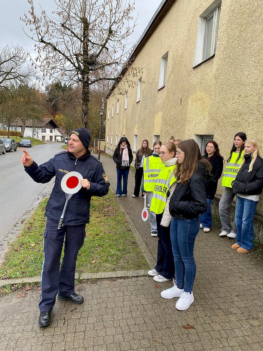 8. und 9. Klassen bekommen haben. Dafür mussten diese zuerst eine Einführungsveranstaltung besuchen und auch eine Prüfung ablegen, dann wurden sie von Herrn Pilsl und Frau Berger von der Polizeiinspektion Deggendorf noch in die Praxis eingewiesen, so dass sie ab Dezember für die Sicherheit der Kinder in Metten im Einsatz sein können.