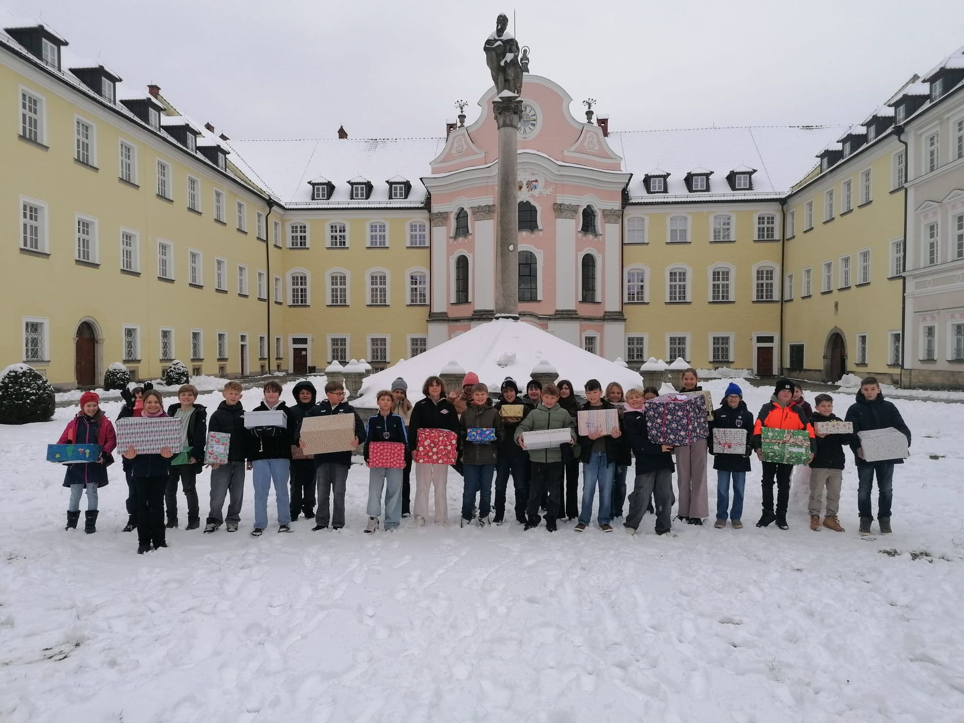 Auch heuer führten die Fachschaft Katholische Religion und die SMV des St.-Michaels-Gymnasiums eine Sammelaktion für Kinder in der vom Krieg zerrütteten Ukraine durch. Zusammen mit mehreren anderen niederbayerischen Gymnasien packten die Schülerinnen und Schüler in den jeweiligen Klassen fleißig und sehr gewissenhaft Präsente mit täglich benötigten, doch leider aufgrund der schwierigen Versorgungslage nicht immer verfügbaren Artikeln, wie z.B. Kleidungsstücken oder Schulmaterialien. Dabei kam eine stolze Menge von Päckchen zusammen, die zur Sammelstelle am Gymnasium Vilshofen gebracht wurden. Nach der Abholung werden diese vor Ort am Fest des Hl. Nikolaus an Kinder in Kinderheimen, Schulen, bedürftigen Familien und insbesondere an Binnen-Flüchtlinge verteilt. Ein herzliches „Vergelt’s Gott“ an alle Beteiligten!