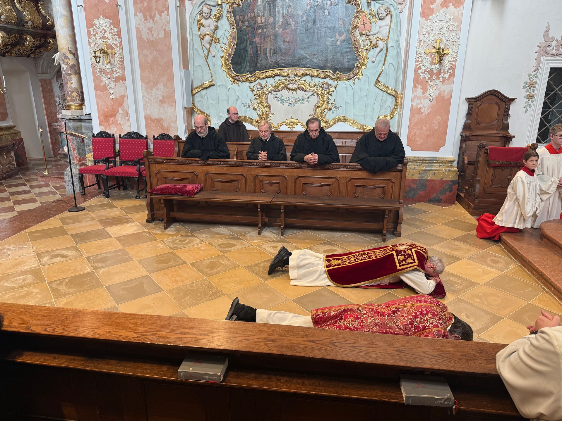 In Erinnerung an die Geschehnisse des Gründonnerstags haben sich die Gläubigen der Pfarreiengemeinschaft Metten-Neuhausen zusammen mit uns Mettener Mönchen in der Pfarr- und Klosterkirche St. Michael am Abend des 2. April versammelt. Abt Athanasius stand der Eucharistiefeier vom letzten Abendmahl vor. Bei der Fußwaschung traten ein Erstkommunionkind, Firmlinge und mehrere Erwachsene aus den Pfarreien Metten und Neuhausen vor den Altar. Abt Athanasius wusch ihnen die Füße. Zuvor deutete er diesen Ritus und nahm Bezug zu den Worten aus dem Evangelium zum Gründonnerstag. Mit Abt Athanasius standen unser Prior P. Thomas, Abt em. Wolfgang M. Hagl sowie die Mitbrüder P. Michael, P. Markus, P. Norbert, P. Erhard und P. Altmann am Altar. Ebenfalls konzelebriert hat P. Felix. Pater Maurus fungierte als Diakon und verkündete das Evangelium. Nachdem die Orgel verstummte, erfüllten Volksgesang sowie die Stimmen der Schola auf der Empore unsere Stiftskirche mit festlichem Gesang. „Nach dem Lobgesang gingen sie zum Ölberg hinaus.“ Der Tradition folgend wurde das Allerheiligste nach der Messfeier in einer Prozession zur Benediktuskapelle übertragen. Dort verbleibt das Allerheiligste bis zur Feier der Osternacht. In Erinnerung an die Todesangst Jesu am Ölberg wurde noch bis zur Mitternacht stille Anbetung vor dem Allerheiligsten in der Benediktuskapelle gehalten. Das heilige Triduum von Leiden, Tod und Auferstehung Jesu hat auch in unserer Pfarreiengemeinschaft und für unsere Mönchsgemeinschaft begonnen.