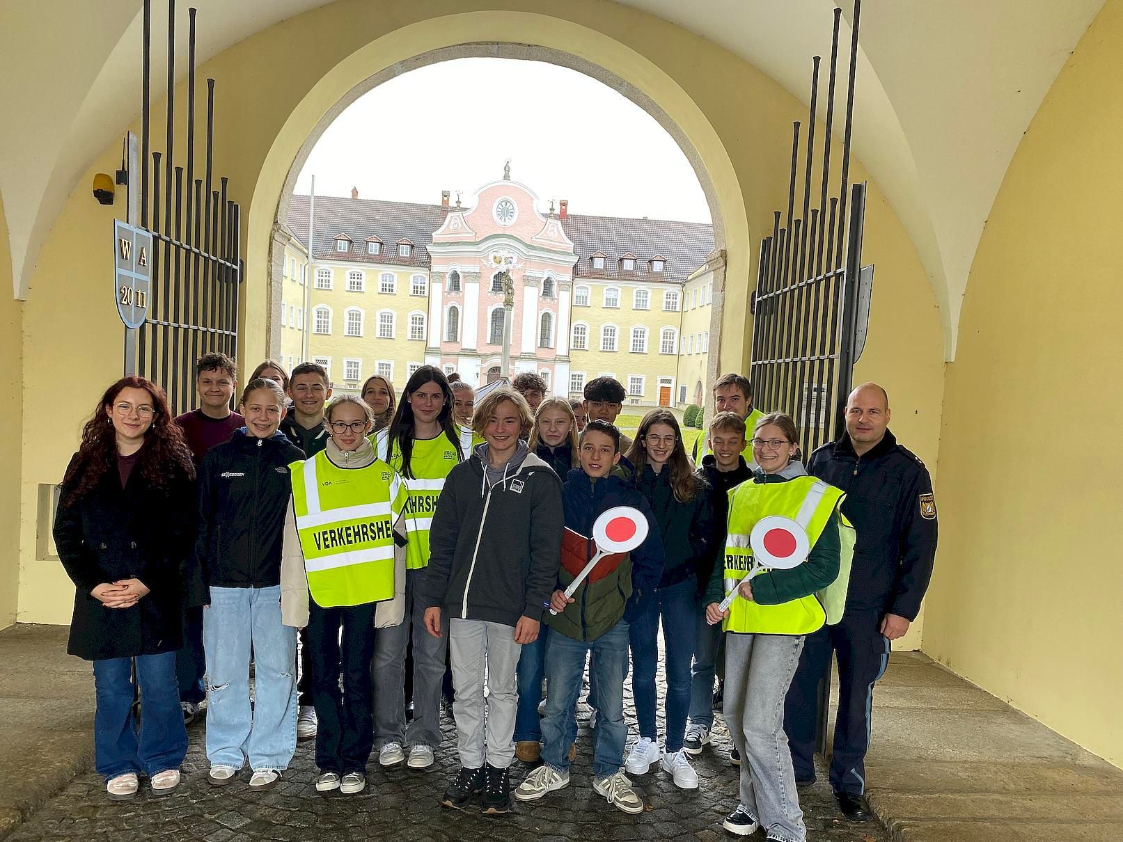Engagement für andere – ja! Aber deshalb früher aufstehen? – auch ja! Während so mancher andere sein Frühstücksbrot genießt oder schnell noch den Unterrichtsstoff für die erste Schulstunde lernt, stehen sie am Straßenrand und lotsen die Grundschulkinder sicher über die Straße, und zwar bei jedem Wetter. Die Rede ist von den Schülerlotsen unseres Gymnasiums, die täglich am Übergang des Fußgängerwegs über die Karl-Kufner-Str. ihren Dienst tun. Und so ist es umso bemerkenswerter, dass sie heuer wieder Verstärkung von 18 Schülerinnen und Schülern aus den 8. und 9. Klassen bekommen haben. Dafür mussten diese zuerst eine Einführungsveranstaltung besuchen und auch eine Prüfung ablegen, dann wurden sie von Herrn Pilsl und Frau Berger von der Polizeiinspektion Deggendorf noch in die Praxis eingewiesen, so dass sie ab Dezember für die Sicherheit der Kinder in Metten im Einsatz sein können.