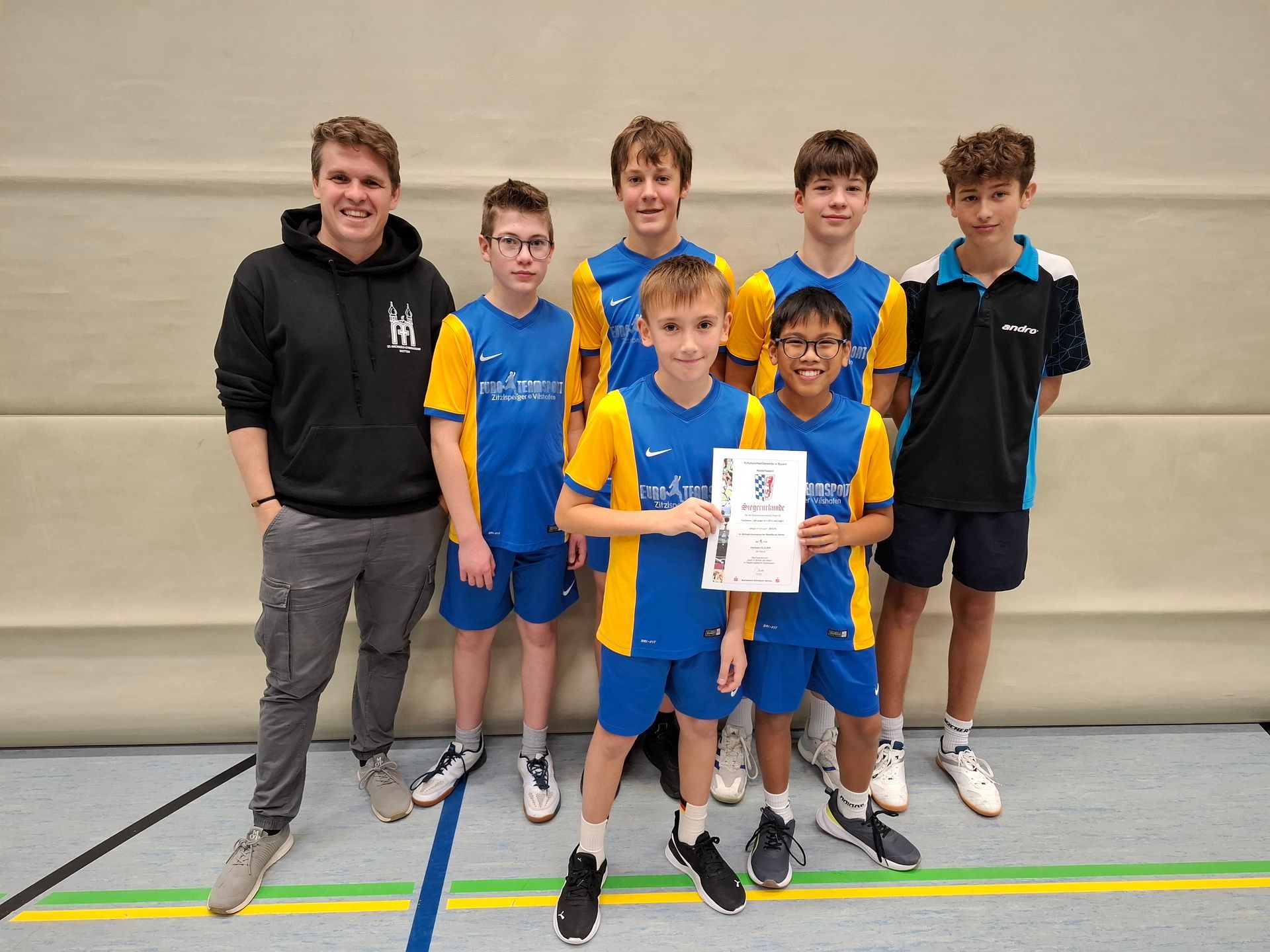Großer Erfolg für unsere Tischtennisspieler. Im Regionalfinale konnte sich die Jungenmannschaft in hart umkämpften Duellen gegen das Gymnasium Waldkirchen und die Realschule Viechtach knapp aber verdient mit 5:4 bzw. 7:2 durchsetzen und damit das Bezirksfinale erreichen, welches als Heimspiel in Metten ausgerichtet wurde. Von vier qualifizierten Mannschaften konnte unsere Mannschaft hier den zweiten Platz erringen.