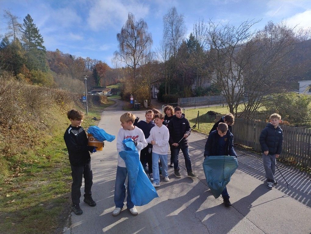 Wie schon in den vergangenen Jahren beteiligte sich das St.-Michaels-Gymnasium an der Müllsammelaktion der Gemeinde Metten. Mit Handschuhe n, Zangen und blauen Müllsäcken bewaffnet stapften die Schülerinnen und Schüler der Klasse 6a tapfer durch die Gegend und sammelten alles auf, was sich auf Wegen, Rasenstücken, dem Perlbachdamm etc. befand und leisteten so einen wichtigen Beitrag zur Sauberkeit Mettens.