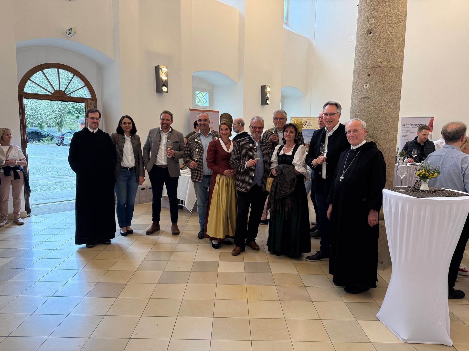 Wo einstmals süffiges Klosterbier gebraut wurde konnte man am vergangenen Wochenende erlesene Spezialitäten aus der Wachau genießen. Die Marktgemeinde Metten hat in Kooperation mit der österreichischen Partnergemeinde Rossatz-Arnsdorf erstmals das Format der „Wachauer.Wein.Begegnung“ aufgelegt. So verbindet sich Geschichte mit Kulinarik, die gewachsene Gemeindepartnerschaft mit freundschaftlicher Verbundenheit über Landesgrenzen hinweg. Seit über 25 Jahren sind die politischen Gemeinden von Metten und Rossatz-Arnsdorf verbunden. Um ein Vielfaches älter sind die geschichtlichen Verbindungen beider Regionen an der Donau. Das altehrwürdige Benediktinerkloster Metten hatte über viele Jahrhunderte Besitzungen in der Wachau. Auch im Gebiet der heutigen Gemeinde Rossatz-Arnsdorf gab es Bereiche, die das Kloster Metten für den Weinbau nutzte. Heute freilich sind es viele Wachauer Familien, die sich dem Weinbau verschrieben haben. Die Familien Sigl, Polz, Supperer, Rehrl-Fischer, Kräutner, Gallhofer und Schoissengeyer sind der Idee der politischen Gemeinden gefolgt und sind gerne nach Metten gekommen. Im Sudhaus des Klosters konnte man die Weinspezialitäten der einzelnen Weingüter aus erster Hand verkosten und genießen. Typische Rebsorten der Wachau bringen die markanten Weine der Wachau hervor und so überzeugten an allen Ständen der Weinbauern die Wachauer Klassiker Grüner Veltliner als Steinfeder, Federspiel oder Smaragd ebenso wie Riesling. Als Abrundung wurden von Familie Blauensteiner Marillenschmankerl an einem Stand feilgeboten. An die 60 verschiedene Weine konnten die Besucherinnen und Besucher den Tag über probieren. Daneben war es möglich, die Winzerfamilien aus der Wachauer Partnergemeinde kennen zu lernen. Mettens Bürgermeister Andreas Moser zeigte sich über die gelungene Veranstaltung sehr erfreut. „Das partnerschaftliche Miteinander kann im Kulturaustausch wunderbar gelebt werden“, so Moser, der unter den Wachauer Gästen auch Bürgermeister Josef Wildam und Vizebürgermeister Michael Poysdorfer besonders begrüßte. Die Ehefrauen der Bürgermeister waren anlässlich der Wachauer.Wein.Begegnung in der für die Region typischen Tracht tagsüber unterwegs, um in Metten und auf dem Deggendorfer Stadtplatz entsprechend für die Gemeinschaftsveranstaltung „Metten meets Rossatz“ zu werben. Gerade in den Abendstunden war das ehemalige Sudhaus der Benediktinerabtei gut gefüllt. Launige Musik, angeregte Gespräche über Gott und die Welt, freundschaftliches Miteinander über Landesgrenzen hinweg und viele kulinarische Schmankerl boten einen angenehmen Zeitvertreib an historischer Stätte. Ein Team von Schülerinnen und Schülern des St.-Michaels-Gymnasium und die Klosterküche unterstützen die Veranstalter mit herzhaften Schmankerln, die man perfekt zu dem einen oder anderen Glas Wein zu sich nehmen konnte. Abt Athanasius Berggold OSB freute es, dass die Räume des Klosters einen schönen Rahmen für die Wachauer.Wein.Begegnung bieten durften. „So bleibt Geschichte lebendig und wird auch nachfolgenden Generationen auf die kulinarische Art nähergebracht“, freute sich der Hausherr. Am Ende des Tages waren sich alle Verantwortlichen einig, dass man einen gelungenen Auftakt für ein neues Format der partnerschaftlichen Verbundenheit ins Leben gerufen hat, welches in regelmäßigen Zeitabständen eine Fortsetzung erleben soll.